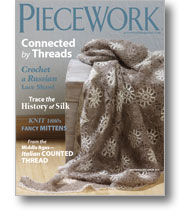 The photos at right are a few of my favorite PieceWork projects from this year. And here's just a glimpse of what they'll see next year: - Grace Coolidge and the story of her knitted counterpane